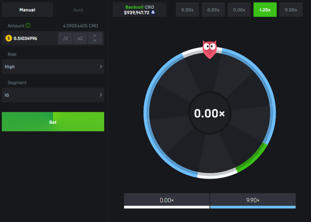 Place a bet on wheel, low risk. Change risk to medium or high, the wheel stays the same visually as low risk, only the payouts change.