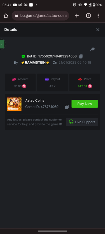1. ID da aposta: 110315019522015268 https://bc.game/#/sd/111NNMGENML0CZ