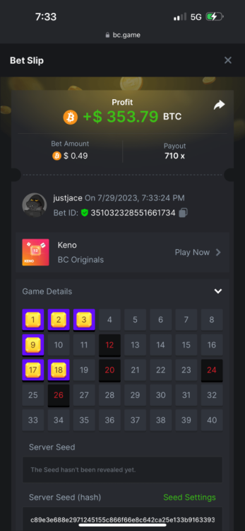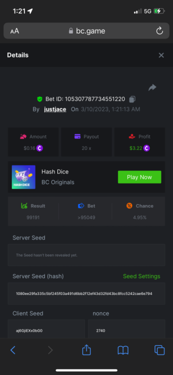 5.1x: https://bc.game/#/sd/118ROTNAR84R9V 8x: https://bc.game/#/sd/118RQVPP8BQYAB 11x: https://bc.game/#/sd/118RPW4RVZQVPV 56x: https://bc.game/#/sd/118RRFI8VER3TF 81.5x: https://bc.game/#/sd/118RS6P6T5KLJN 100x: https://bc.game/#/sd/118U0YISWJW5CJ
